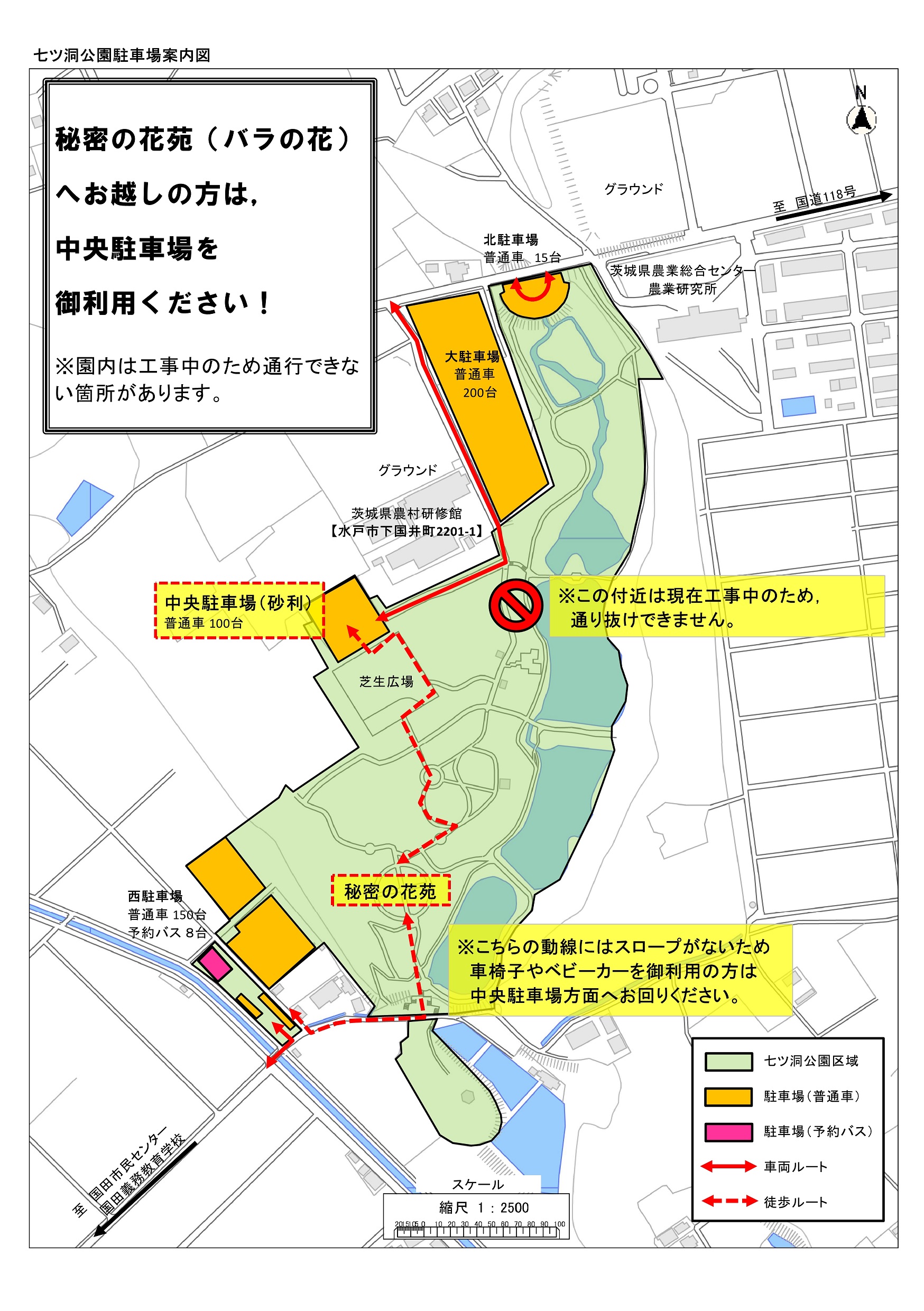 園内工事のため、秘密の花苑にお越しの方は中央駐車場または西駐車場を御利用ください。