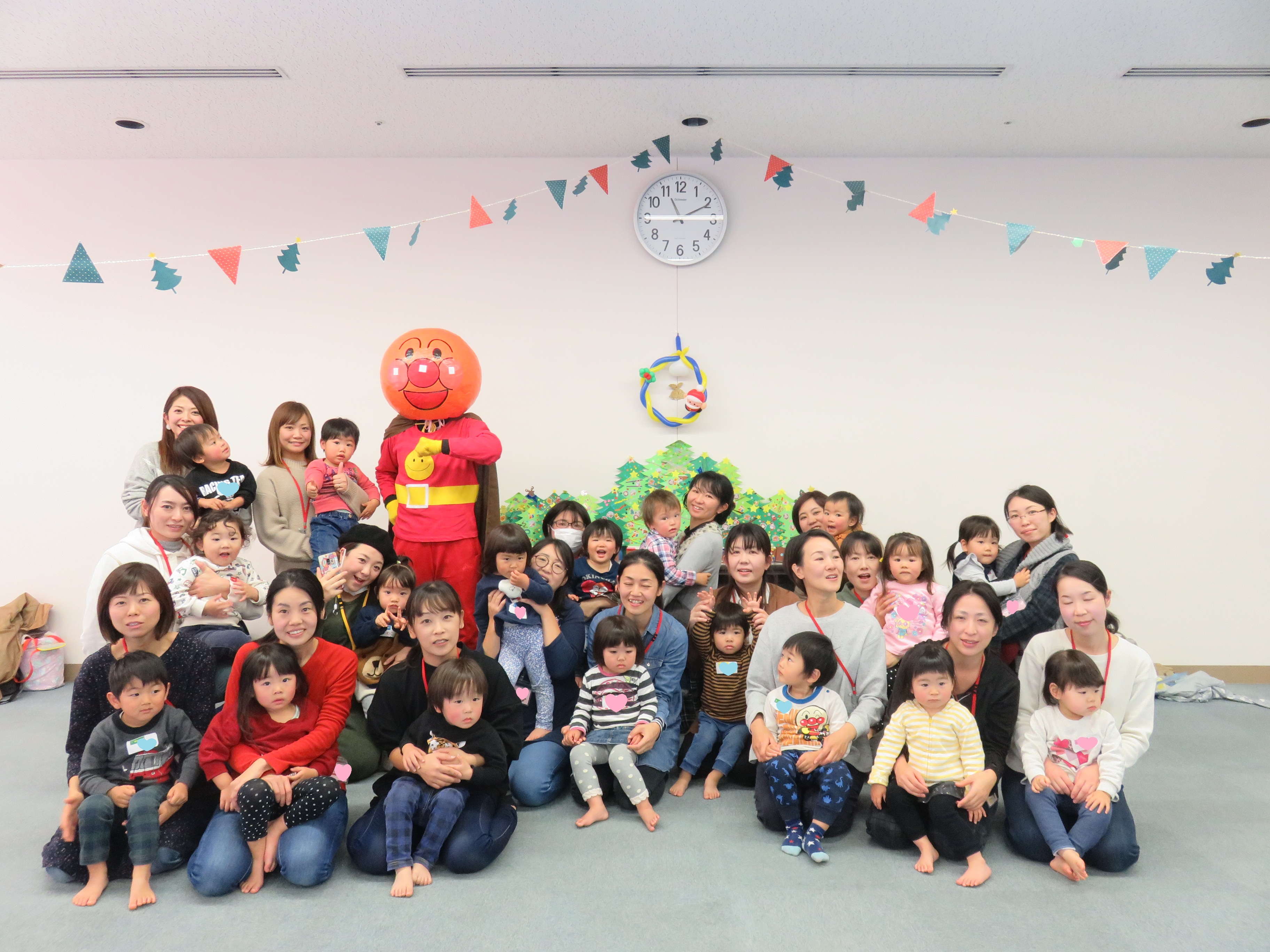 クリスマスツリーボックスを作って、みんなのツリーを集めて飾れば大きなクリスマスツリーの完成です!クリスマスにはまだ早いので、サンタさんに頼まれた「アンパンマン」がプレゼントを持って遊びに来てくれました。