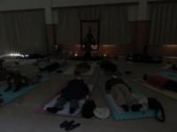 前半は、シンギングボウルによるヒーリングの体験が行われました。暗くした会場で、受講者が目をつぶりリラックスした状態で寝ている中を、講師の先生がスティックでシンギングボウルを叩いたりこすったりして、会場に音色を響かせました。後半は、シンギングボウルについての解説などが行われ、受講者は実際にシンギングボウルを触ってみたり、振動や波動を直接感じたりしていました。