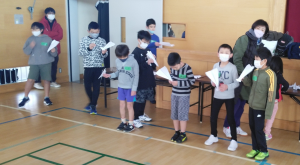 卒業生と新入生にプレゼント贈呈のあと,サブリーダーとレクを楽しみました。