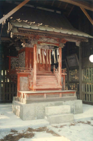 1間社流造り板葺で東面しています。建物は身舎と向拝からなり、身舎の柱上に複雑な三手先組物を置き、小天井、支輪など正当な形式と技法を備え、軒は二軒の繁垂木です。正面に浜縁と木階があり、廻り縁を三手腰先組で支え、その上に高欄をめぐらし、左右に脇障子を付けています。装飾として、各壁面に鳥獣、七福神、琵琶板に花鳥、木鼻に象、獅子、組物間に竜の彫刻を飾り、それぞれの彫り方も優れています。