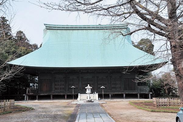 本堂は、大永7(1527)年焼失ののち、享禄2(1529)年に再建され、さらに貞享3(1686)年光圀が大修理を行い、昭和43(1968)年にも解体修理がなされました。茅葺型銅板葺入母屋造の堂々たる姿で、室町期の建築手法を今日に伝えています。
