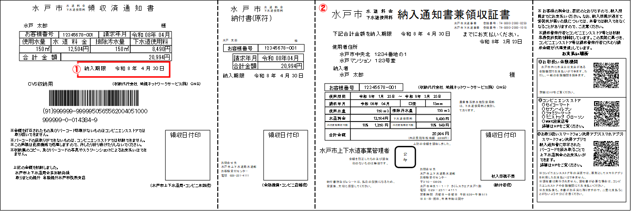 なお、この検針票で直接水道料金等を徴収することはありません。