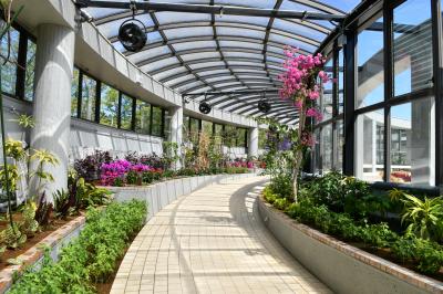 熱帯(ねったい)植物がたくさん見られる洋風(ようふう)の植物園(しょくぶつえん)です。