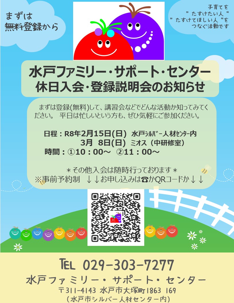 - 水戸ファミリー・サポート・センターのホームページ<外部リンク>(新しいウィンドウが開きます)