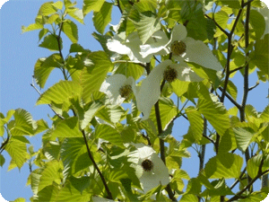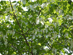 熱帯果樹温室裏手方面にあるハンカチノキは観賞大温室入口横より多くの花が咲いています。