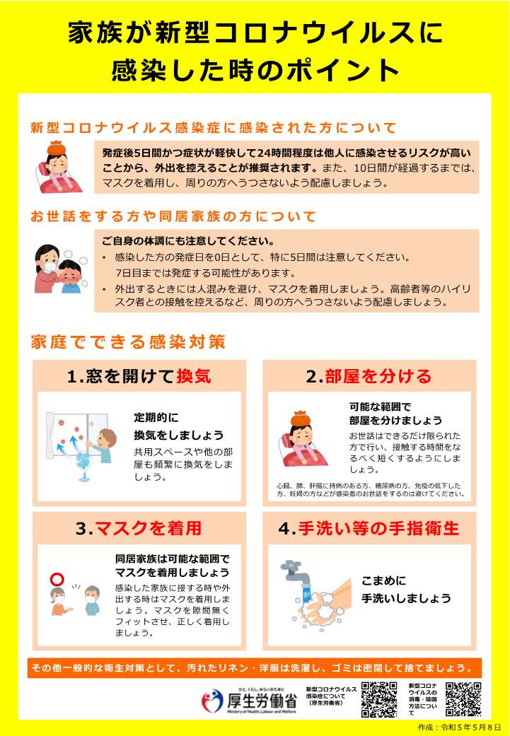 また、発症後10日間が経過するまでは、マスクを着用したり、高齢者などの重症化リスクの高い方との接触は控えるなど、周りの方へうつさないよう配慮しましょう。