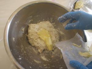 食堂でパン生地を作ります